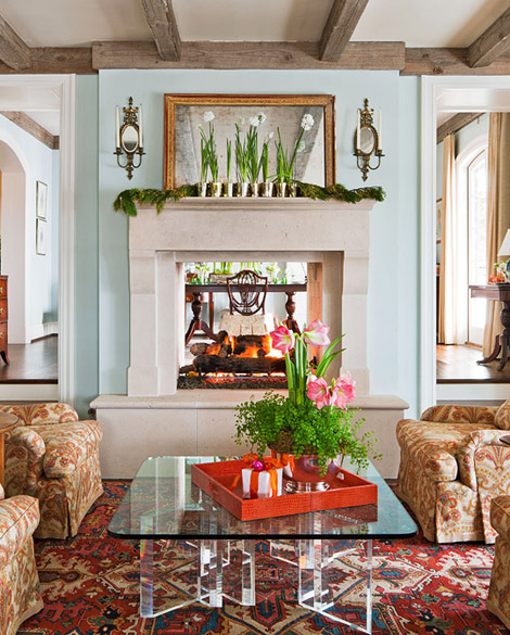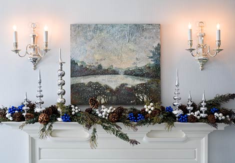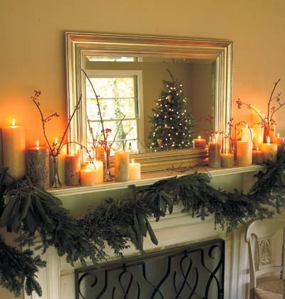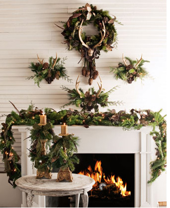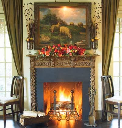 So tell me, how do you decorate your mantle? Greens, antlers, silver, candles, fruit, flowers?