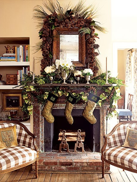 These are all so pretty! I always begin with lots of green . My preference is a more natural look. The candles, a little bit of red, and a few pine cones is easy and festive. I also have two blue and white porcelain pieces that I've added. I have a second fireplace in the kitchen area however I don't have much space ..desk we will see what I come up with. Have fun planning!