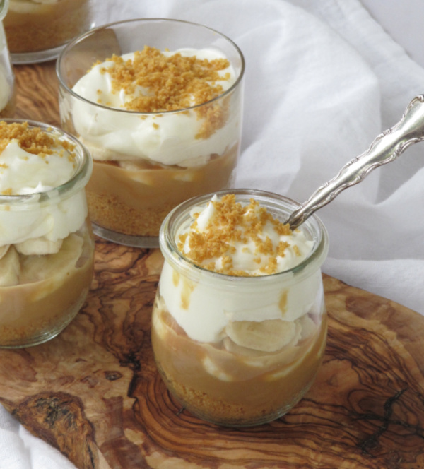 Banoffee pie is easy to make and comes together in just minutes using a few pantry and refrigerator staples. The best part is that for these little jars the recipe is no-bake!