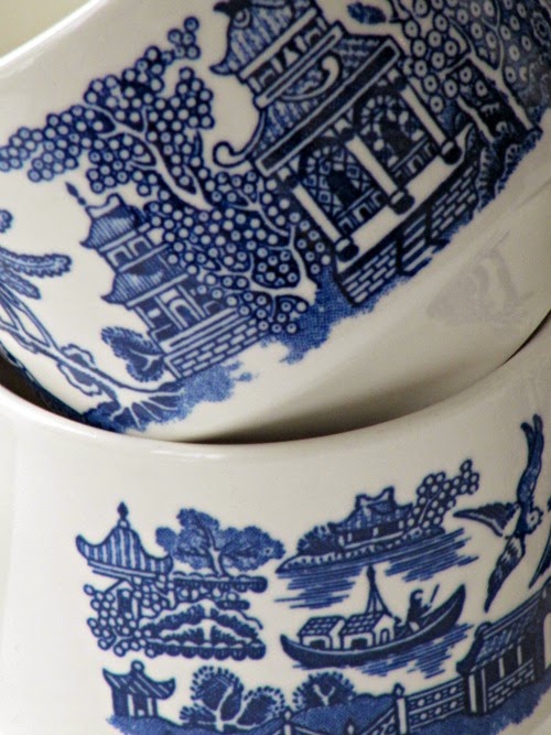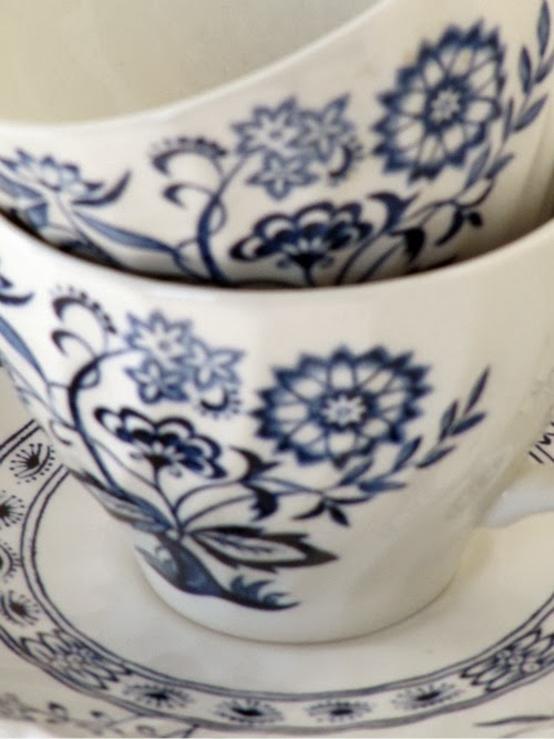 I have never been particularly inspired to decorate with blue and white. I love the combination, it always looks so fresh, clean and crisp. Also, I've never been allured by transfer ware, I don't have a feel for it one way or the other. Some is very pretty, some…not so much. I have to tell you about my dishes. I don't like for my dishes to be matchy- matchy. Over the years, I've acquired various pieces from grandmothers and an elderly neighbor. I now 8 place settings that we used everyday. They are a combination of the Blue Willow (above), Blue Onion (above) and blue and white Westminster. I haven't bought a single piece and I love the way my table looks! Blue and white transfer ware was determined to be a part of my life even when I wasn't even looking.