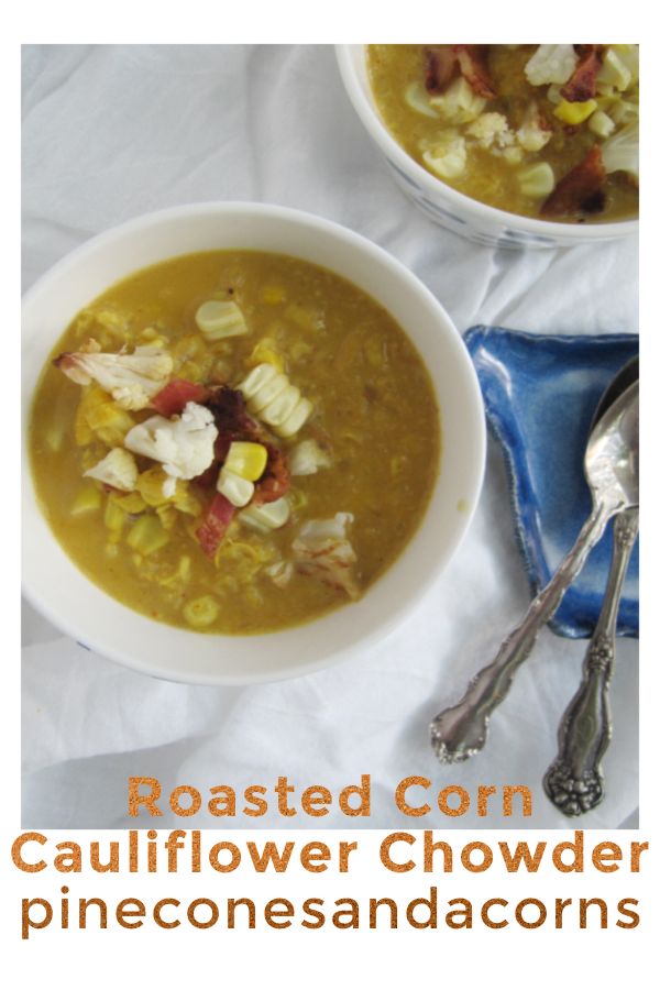 This week we had a few grilled ears of corn left over so I decided to make some soup. This corn and cauliflower chowder is so easy and delicious, you can serve it on its own or with a salad.