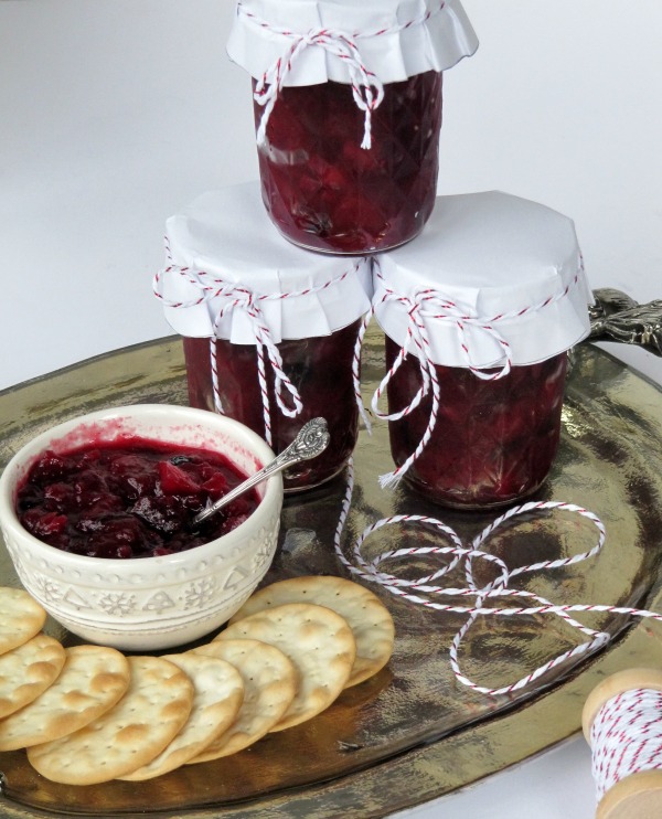 Today is day 5 of my “Easy Homemade Christmas gifts” and I thought I would share my favorite Cranberry Apple Chutney. It is perfect for the upcoming holiday because it is so versatile  seriously it tastes great on almost anything). It is sweet, savory and spicy at same time.