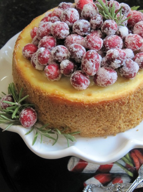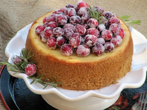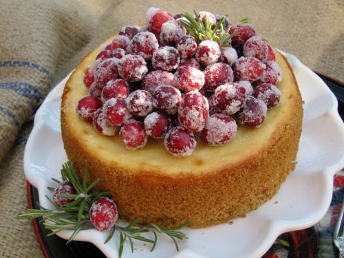 Eggnog Cheesecake with Candied Cranberries