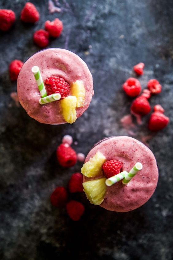 Raspberry Mango Protein Smoothie from Climbing Grier Mountain could be a healthy breakfast option for 2020.