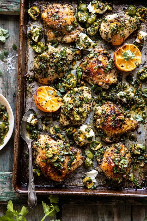 Or how about this Roasted Garlic Butter Sheet Pan Chicken from Half Baked Harvest?