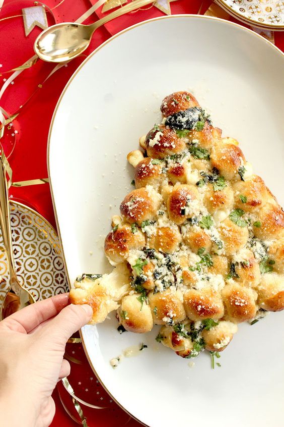 Cheese, bread and marina sauce makes a fun and festive Pull Apart Cheese Tree from Glitter & Bubbles.