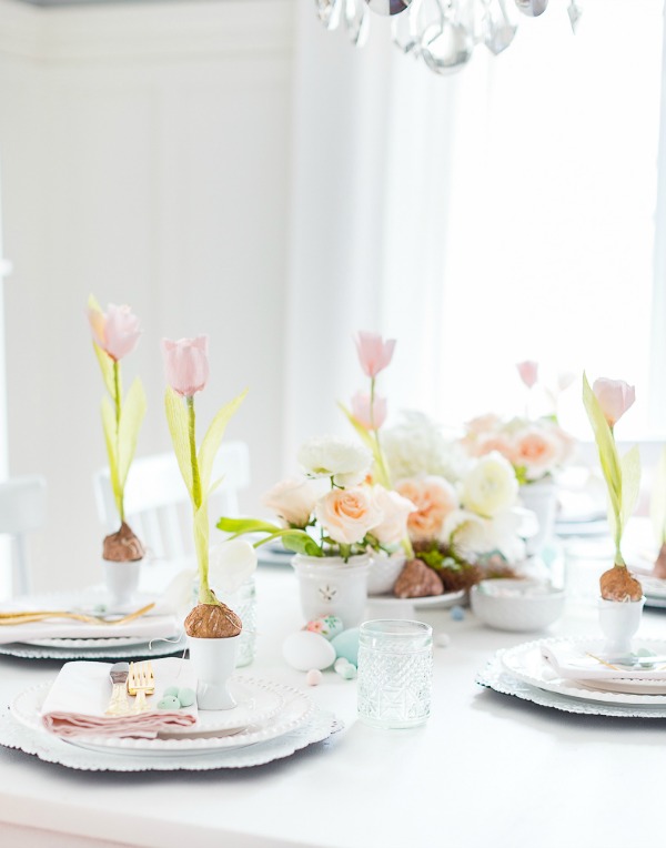 I am not really crafty.  I might rethink that after seeing this easy and creative Crepe Paper Tulip from one of my favorite and most creative and talented bloggers that I know, Lucy from Craftberry Bush. I think this would be a great addition to any Spring or Easter table.