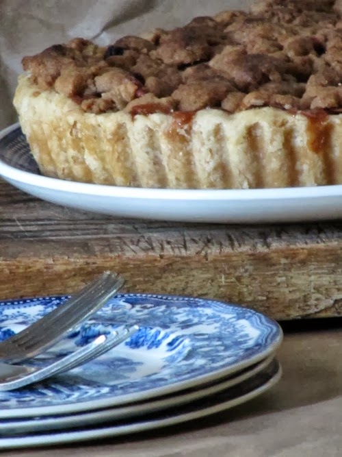 Harvest apple pie, a flakey crust, piled with apples and topped with a butter crumble, a delicious dessert for any gathering, even a gathering of 1.