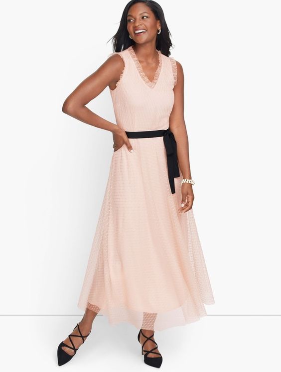 Beautiful dress that you could wear all year long. For Christmas I would pair it with a red or fuchsia belt.