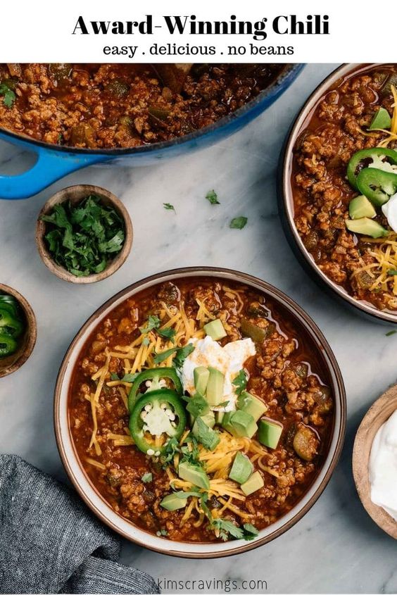 8. Award Winning Beef(No Bean) Chili from Kim’s Cravings.