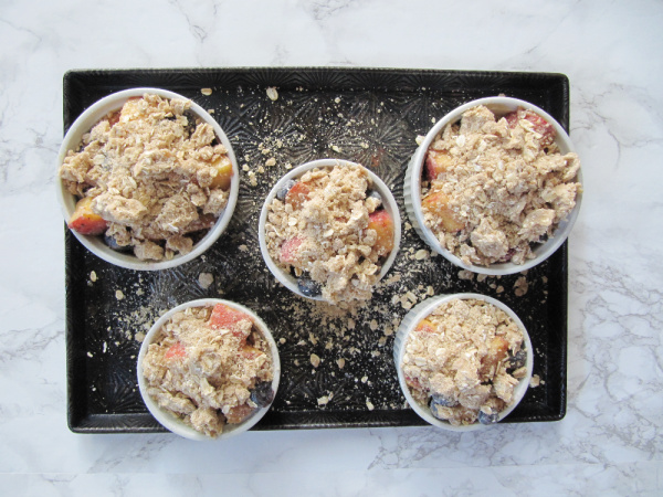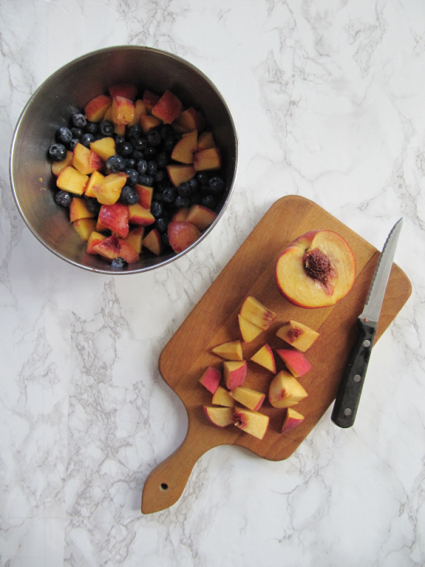 I didn’t need any of my supplies for this easy and delicious blueberry and peach crisp. Some people call this crumble but I’ve always known it as a crisp. If you know if there is a difference between a crumble and a crisp please let me know.
