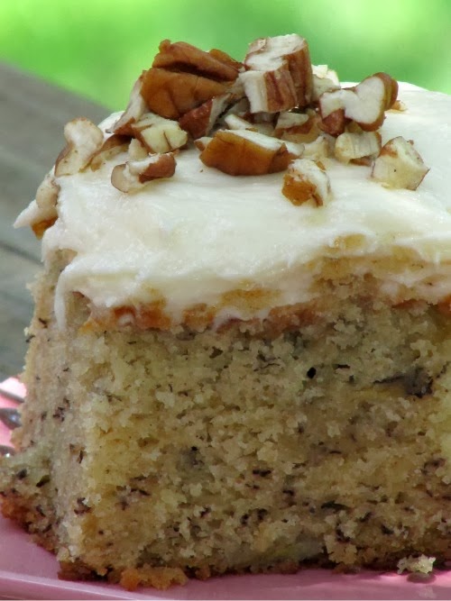 I have Thanksgiving on my mind and I was thinking, what if you have guests that don’t like traditional pumpkin and pecan pies? I cannot imagine such a person but what if you did? You could serve them this moist scrumptious Banana Spice Cake with Cream Cheese Frosting which I recently made in addition to your traditional treats.