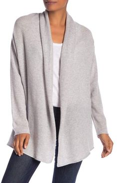 Gray Cashmere Open Front Sweater
